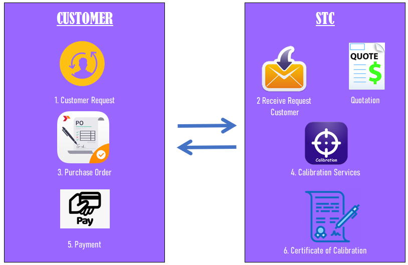 4. หลังจากได้รับใบสั่งซื้อจากผู้ขอรับบริการรสอบเทียบเครื่องมือวัดแล้ว ทางบริษัทฯ จะดำเนินการสอบเทียบ และส่งมอบภายใน 1 - 7 วัน หรือ ตามการ
