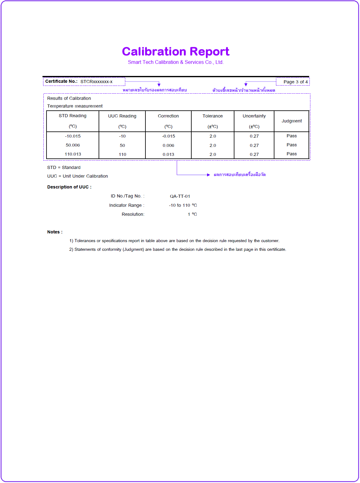 วิธีการอ่านใบ Certificate ของบริษัท สมาร์ทเทค แคลิเบรชั่น แอนด์ เซอร์วิสเซส จํากัด หรือ STC